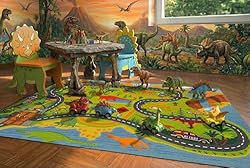 And if you’re looking for a flat surface for your kids to play with their cars, you might want a road playmat like this one from KC Cubs. The backing doesn’t allow the mat to slide around on hard floors, and also because it combines my kids’ love of both cars and dinosaurs.