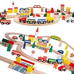 This 100 piece train track set is great for preschoolers. Some reviewers complained that the track pieces didn’t fit together tightly, but honestly, that’s a good thing with little kids! You children will love assembling the track, connecting train cars with their magnets, and running their train along the track.